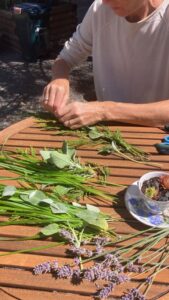 At summer´s end, an achara rasayana ritual I enjoy is cutting herbs from the garden and braiding them into smudge sticks. Once dried, the braid is lit and fragrant smoke purifies myself, the season, and my surroundings. The medicinal plant allies I used in this vata season braid are cedar, lavender, sage, and sweet grass.